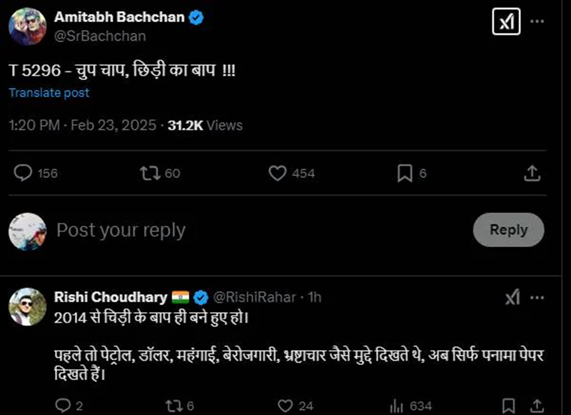 Amitabh Bachchan wrote on Instagram, “Chup chap, chidi ka baap!!!” Many people tried to give a political angle to this tweet of Amitabh, while some linking it to his wife Jaya Bachchan, and some linking it to his son Abhishek Bachchan.