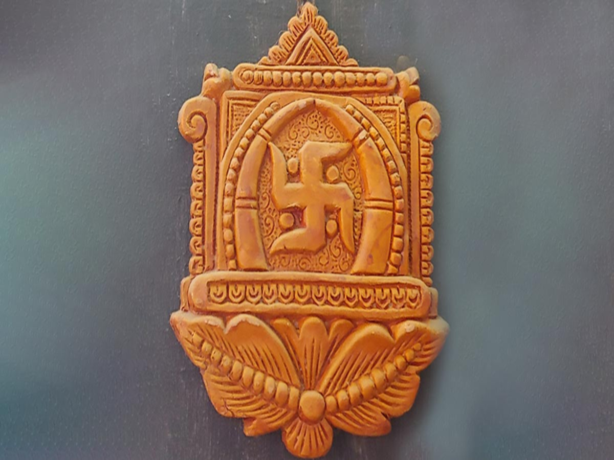 According to religious beliefs, the Swastika should always be drawn in a right-turning—that is, clockwise—direction. All four of its arms must be of equal length, with a small bend at the end of each arm. Additionally, placing dots at the four corners of the Swastika is considered auspicious, as these dots symbolize the four cardinal directions and positive energy. It is considered particularly auspicious to draw the Swastika using red *sindoor* (vermilion), *kumkum*, or turmeric.