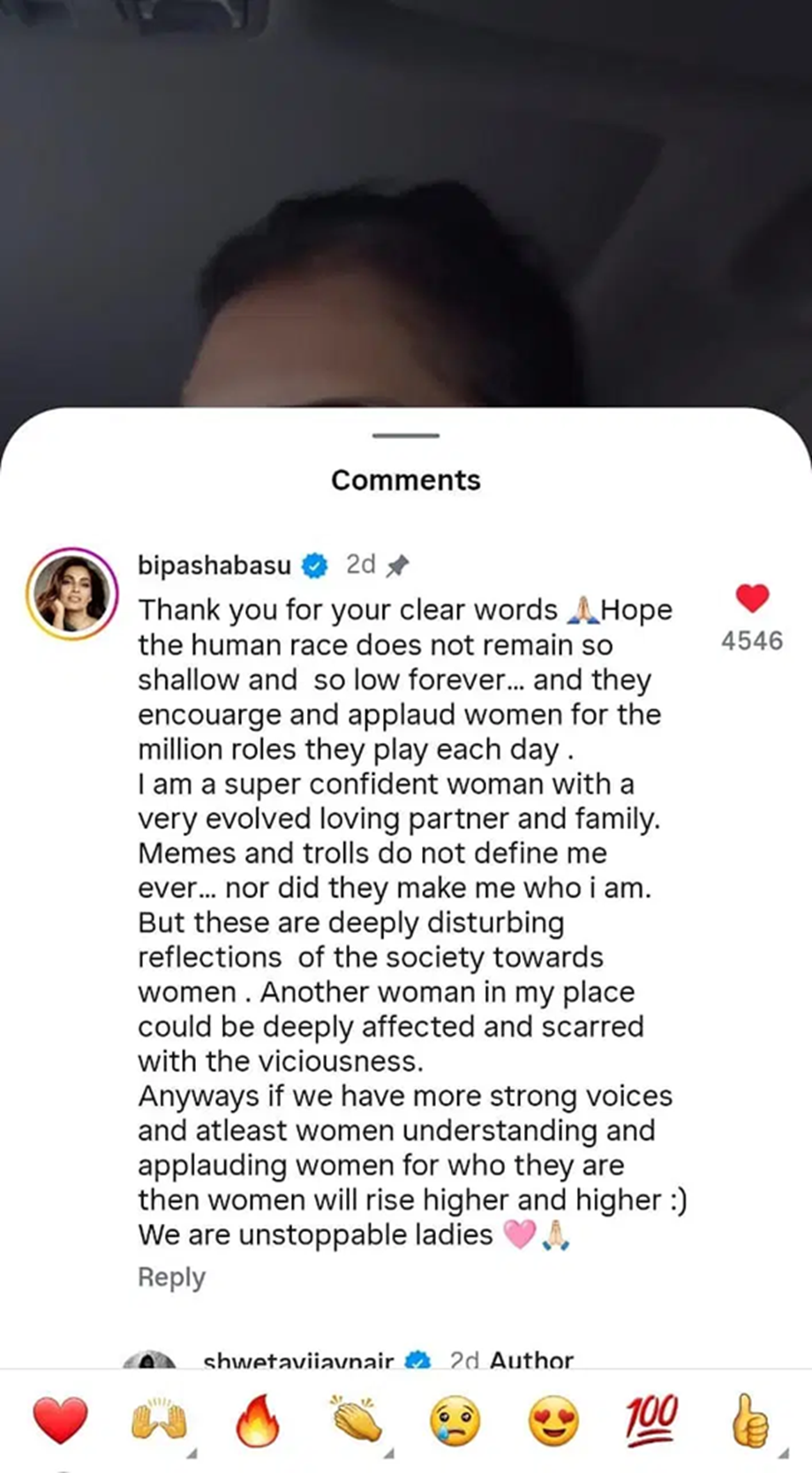 Recently, former Miss India Shweta Vijay Nair posted a video on Instagram, in which she protested against being trolled for weight problems in women after childbirth. In the same video, she also reacted to those trolling actress Bipasha Basu for her sudden weight gain. In the comment section of this video, actress Bipasha wrote, 'Thank you for your clear words. Hopefully, the human race will not always be so low-minded and they will encourage the dedication and sacrifice of women.'