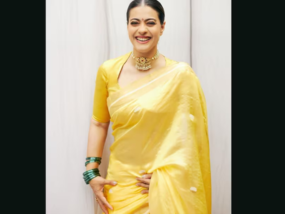 Kajol has worn a yellow saree here as well, but this time she has carried it in a more minimal and elegant manner. Green bangles and a statement necklace further enhance her look. The speciality of this look is that despite being simple, it looks very attractive and stylish.