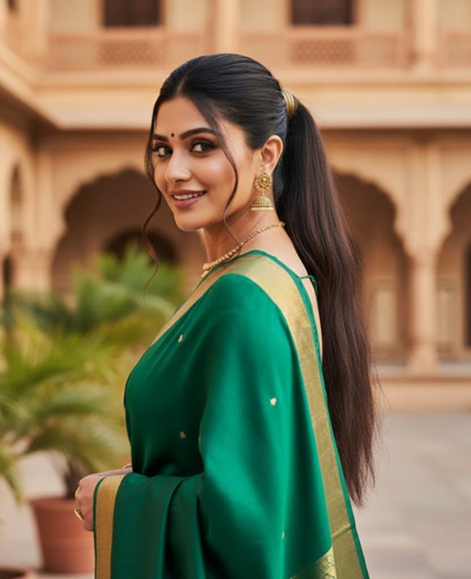 A sari is an attire that beautifully reflects a woman's beauty, dignity, and Indianness. But what truly enhances the beauty of a sari is the right hairstyle. When the beauty of your hair and the elegance of your sari come together, your entire look becomes gorgeous.