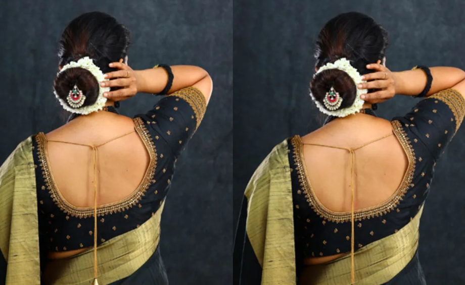 You can also wear this deep open backless blouse with your saree. It will enhance even a simple saree. You can choose either a hook or a tie-up style. Wearing this will give you a very stylish look.