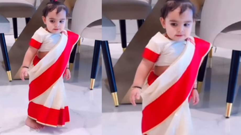 This type of sari is also associated with Durga Puja. Therefore, you can wear it with your daughter. Instead of using pins, sew it together with a needle and thread. This will prevent the child from getting pinned. Be sure to wear bangles on her hands.