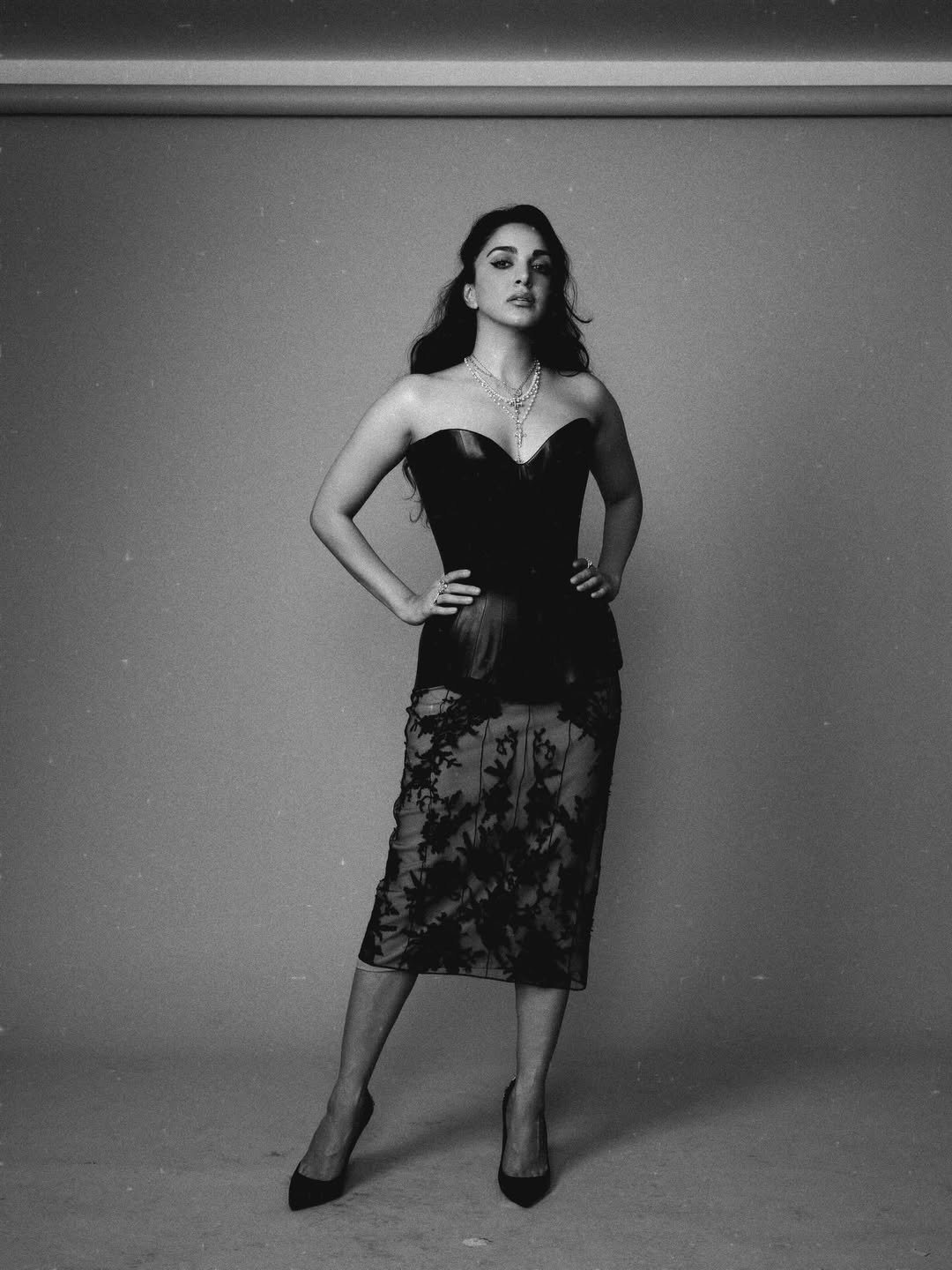 In this new look, Kiara looks incredibly stylish in a black off-shoulder dress.