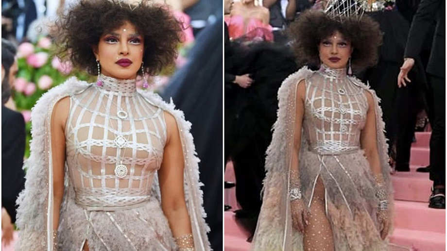 Priyanka Chopra attended the Met Gala this year as well, but her 2019 look is still in the news. That year, under the theme 'Camp: Notes on Fashion', Priyanka wore Dior's thigh-high slit gown, which had a silver top, feathered cape and rainbow skirt. Her strange makeup and retro curls earned her the title of "fashionable joker".