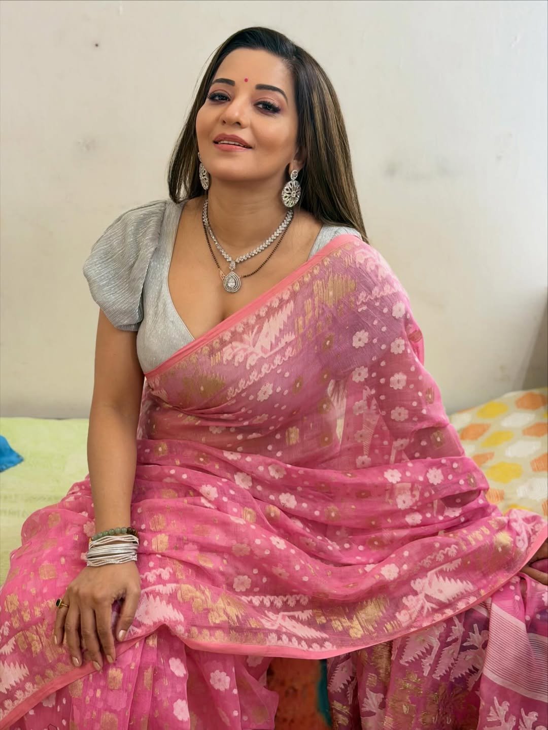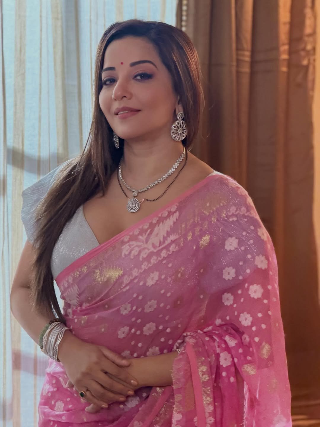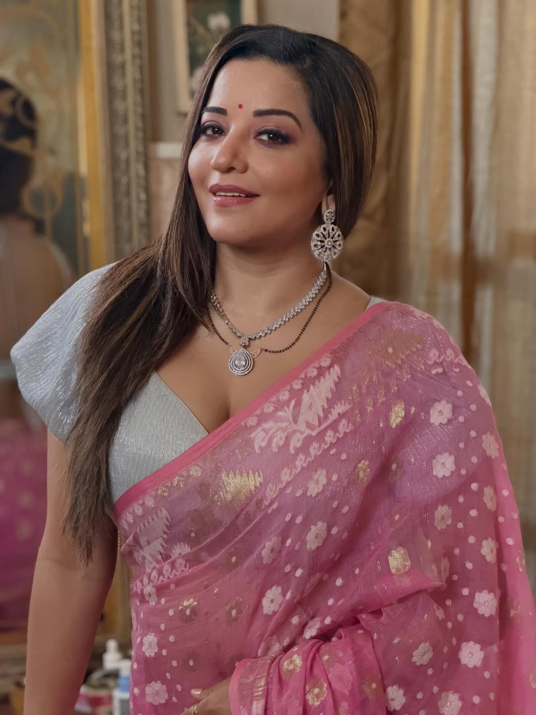 Monalisa's look in a pink saree is being loved by her fans.
