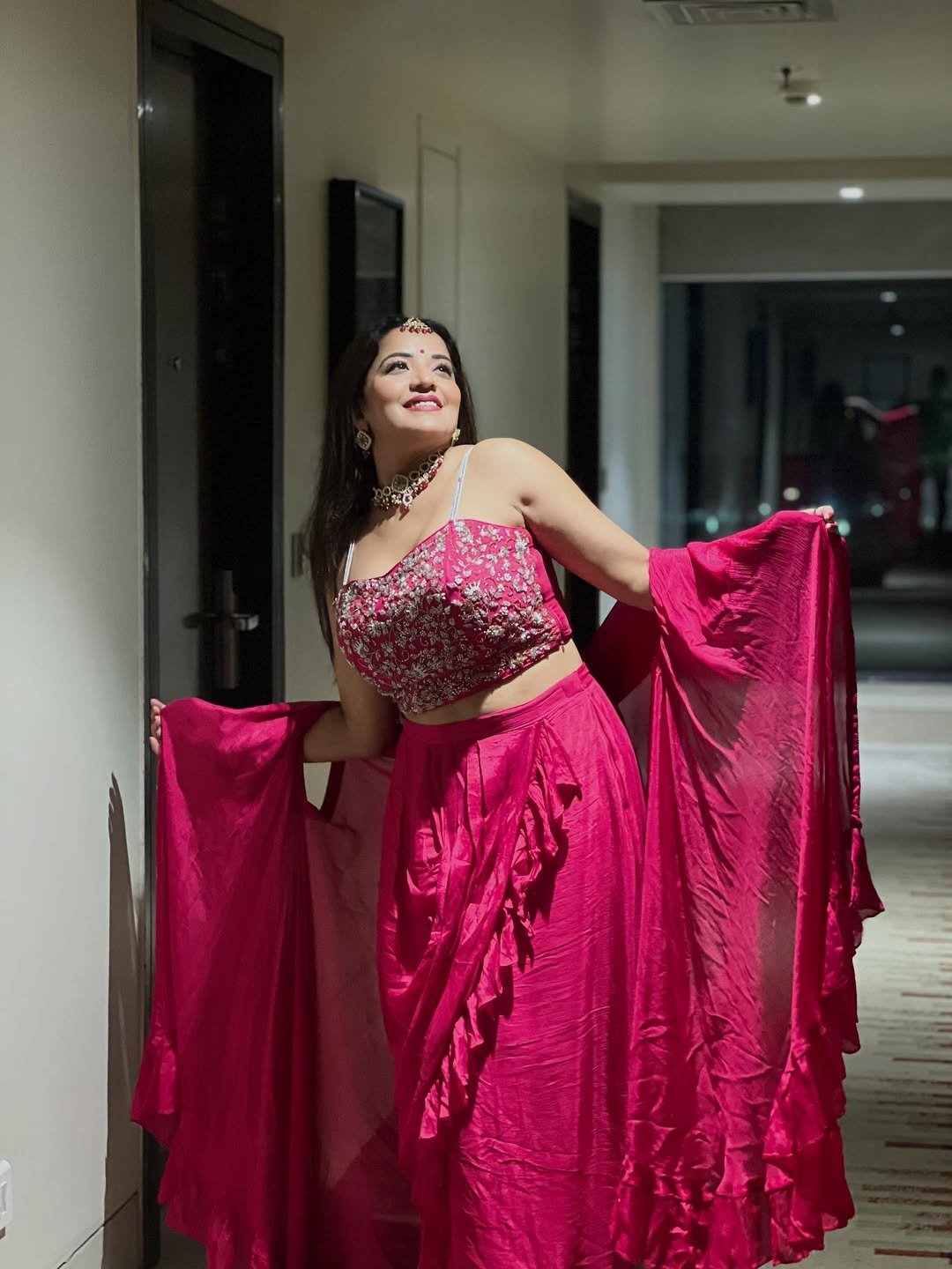 Sharing the photos, Monalisa wrote, "The best part of the night was that I wore a pink dress."