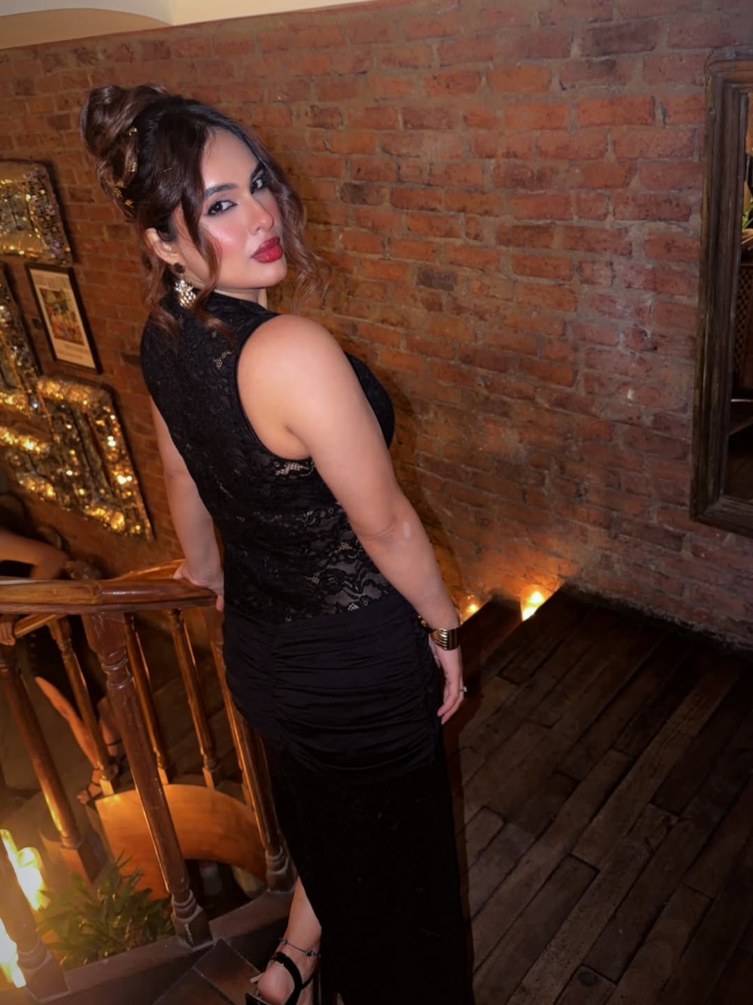 Neha Malik Poses for a Bold Photoshoot in a Thigh-Slit Gown; Writes: "In a Black Dress..."