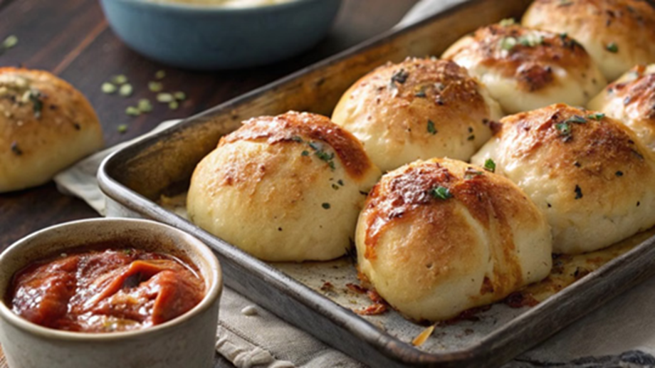 After shaping, lightly butter the top and bake in the oven. Your crispy, cheesy pizza bombs are ready. Serve hot so the cheese flavor comes out even better.