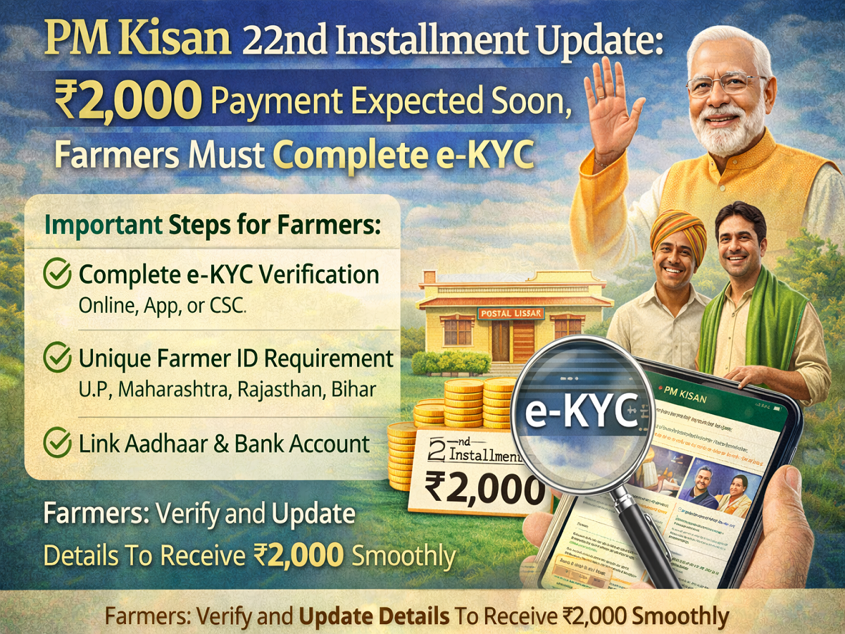 PM Kisan 22nd Installment Update: ₹2,000 Payment Expected Soon, Farmers Must Complete e-KYC