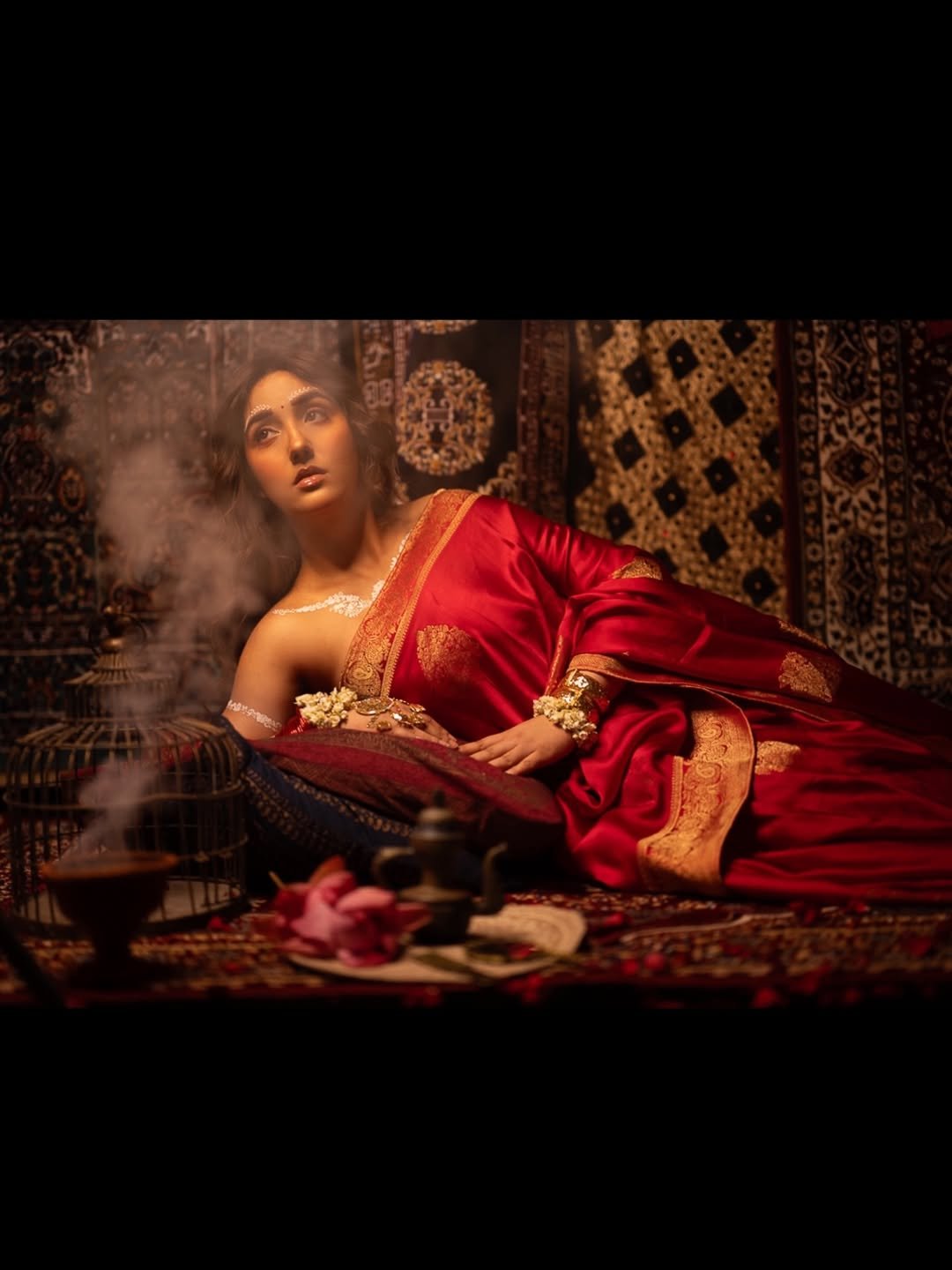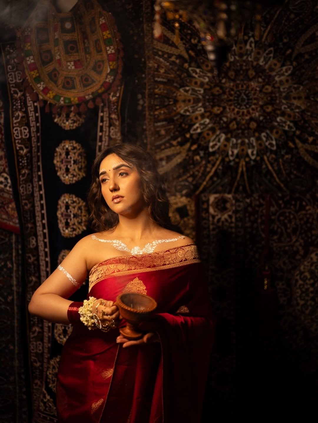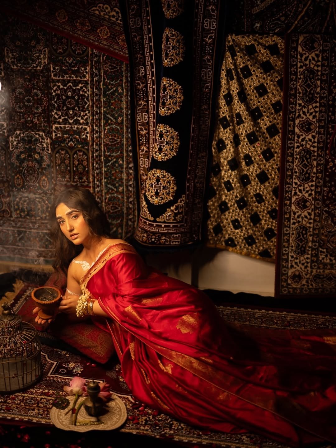 The actress also wore a hand flower in one hand, which enhanced her beauty. Ashnoor wore the red saree without a blouse.