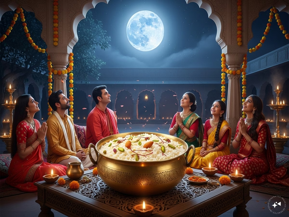 It is believed that on the night of Sharad Purnima, kheer is prepared and placed under the open sky in the moonlight. This infuses the kheer with the nectar of the moon's rays, purifying health and the mind. The next morning, this kheer is distributed among the family as prasad. Kheer infused with saffron is considered a symbol of wealth, health, and peace.