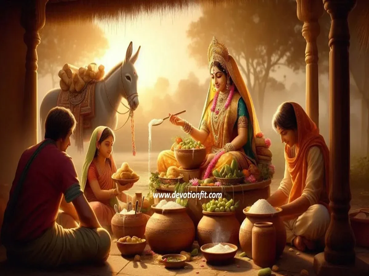 According to priests, Mata Shitala Devi loves cold and stale food. This is why devotees offer cold and stale food to her on Ashtami. This offering includes puris, halwa, puri dhamalu, curry, rice, yogurt, kheer, and other stale dishes.