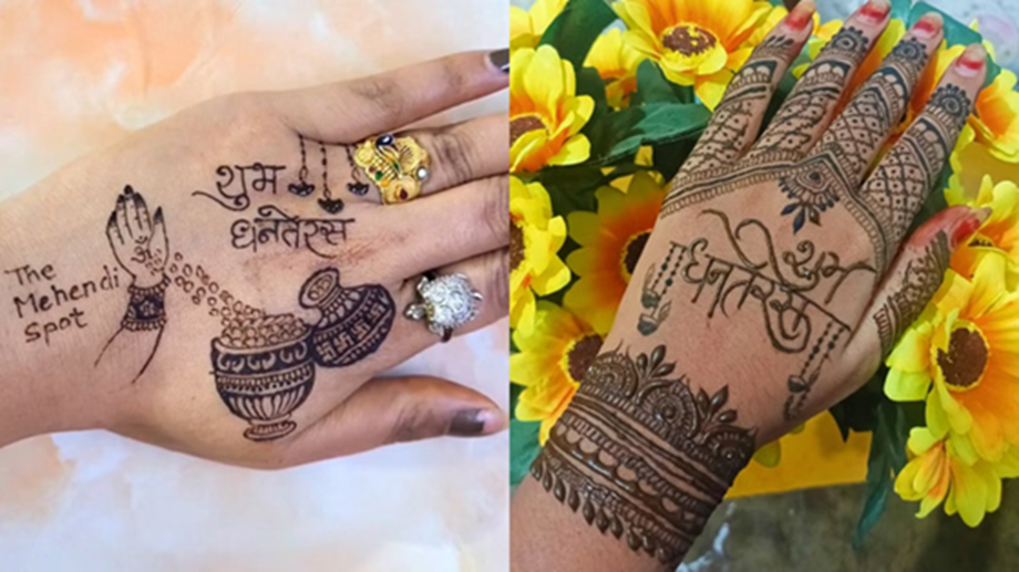 First, let's take a look at Dhanteras mehndi designs... So, if you want to apply mehndi on your hands on Dhanteras, choose this design. For this, you can get "Shubh Dhanteras" written on your hands. A filled Kalash like this will make you look adorable.