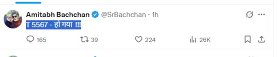 Megastar Amitabh Bachchan is known for his unique posts on social media. He often shares updates from his day, shooting experiences, or life trivia on Twitter (X). Recently, he posted another interesting post – T 5567 – Done! People are commenting on this post in abundance.