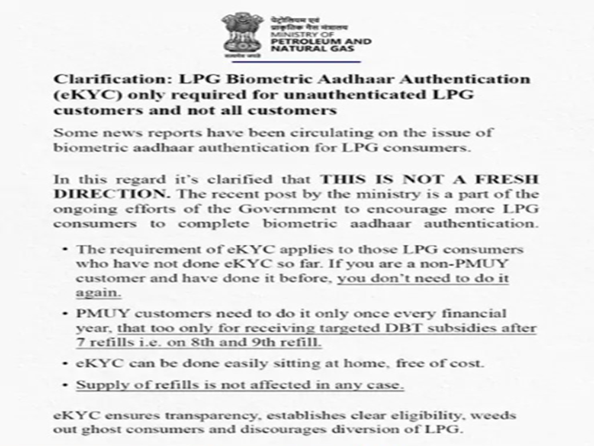 For some time now, reports have been circulating suggesting that if customers fail to complete their e-KYC, their gas connections will be disconnected. The Central Government has now issued a clarification regarding these reports. The Ministry of Petroleum has stated that e-KYC is required only for those customers whose verification process has not yet been completed.