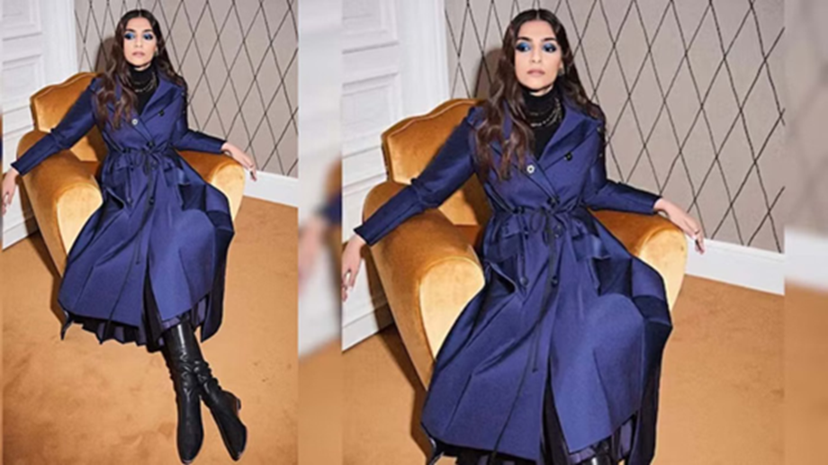 Girls who love layering can take tips from Sonam Kapoor's look. For this, you can also wear pointed heels. Wear a blue long dress with a black turtleneck. Complete the look with highlighted eye makeup and keep your hair open.