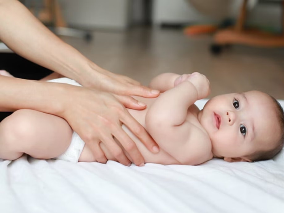 Never massage babies with too much force. This can leave bruises on the baby's skin. Parents should massage their baby with gentle hands in a circular motion.