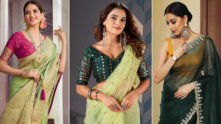 Fashion: These 5 colored blouses look great with green colored saree, wear them like this to look stylish..