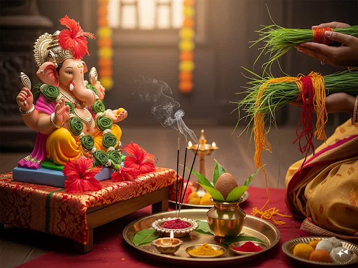 - Turmeric knots: For a special wish, tie 5 knots of turmeric in a yellow cloth and place them at Lord Ganesha's feet.