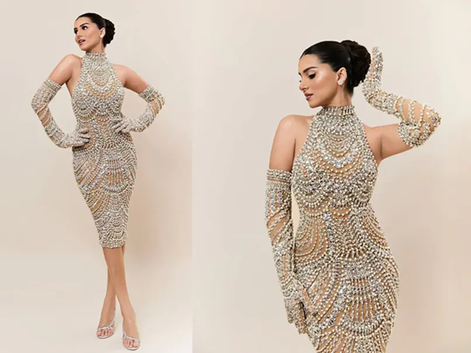 Tara Sutaria's look is quite glamorous. Tara looks very stylish in this full-stone work bodycon dress. With a bun hairstyle, subtle makeup, and this bodycon dress, you too can be the star of the party.