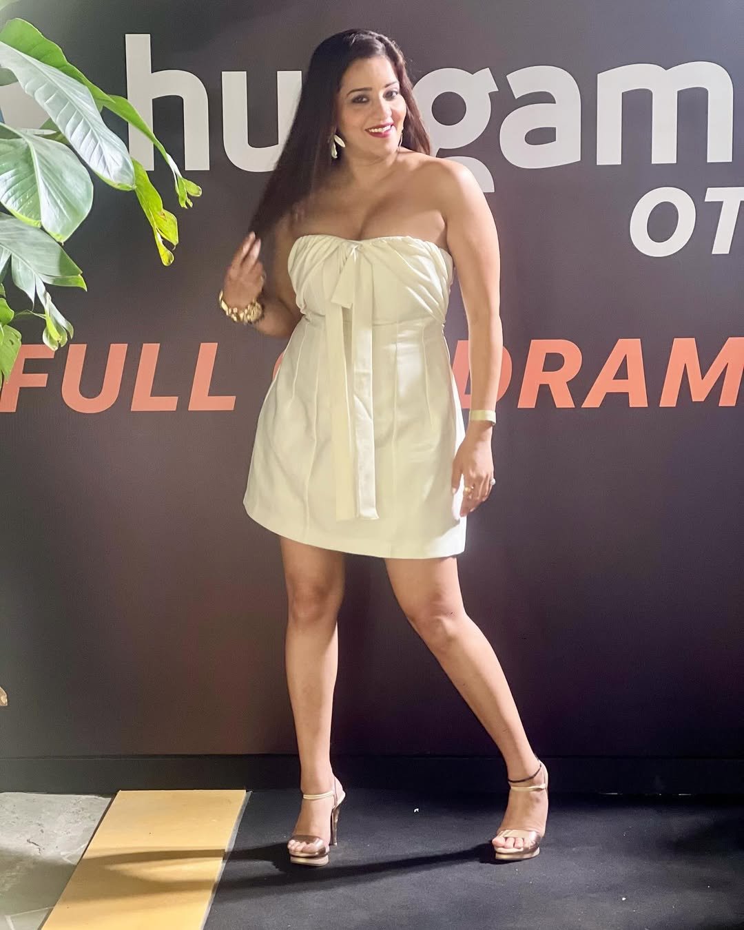 Monalisa wore a one-piece at the success party of Hungama OTT and had a simple look.