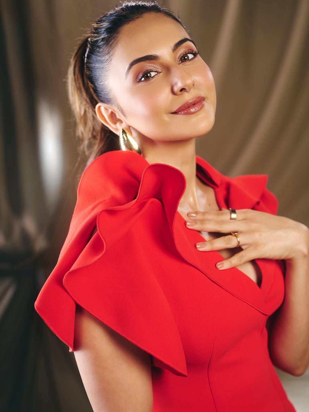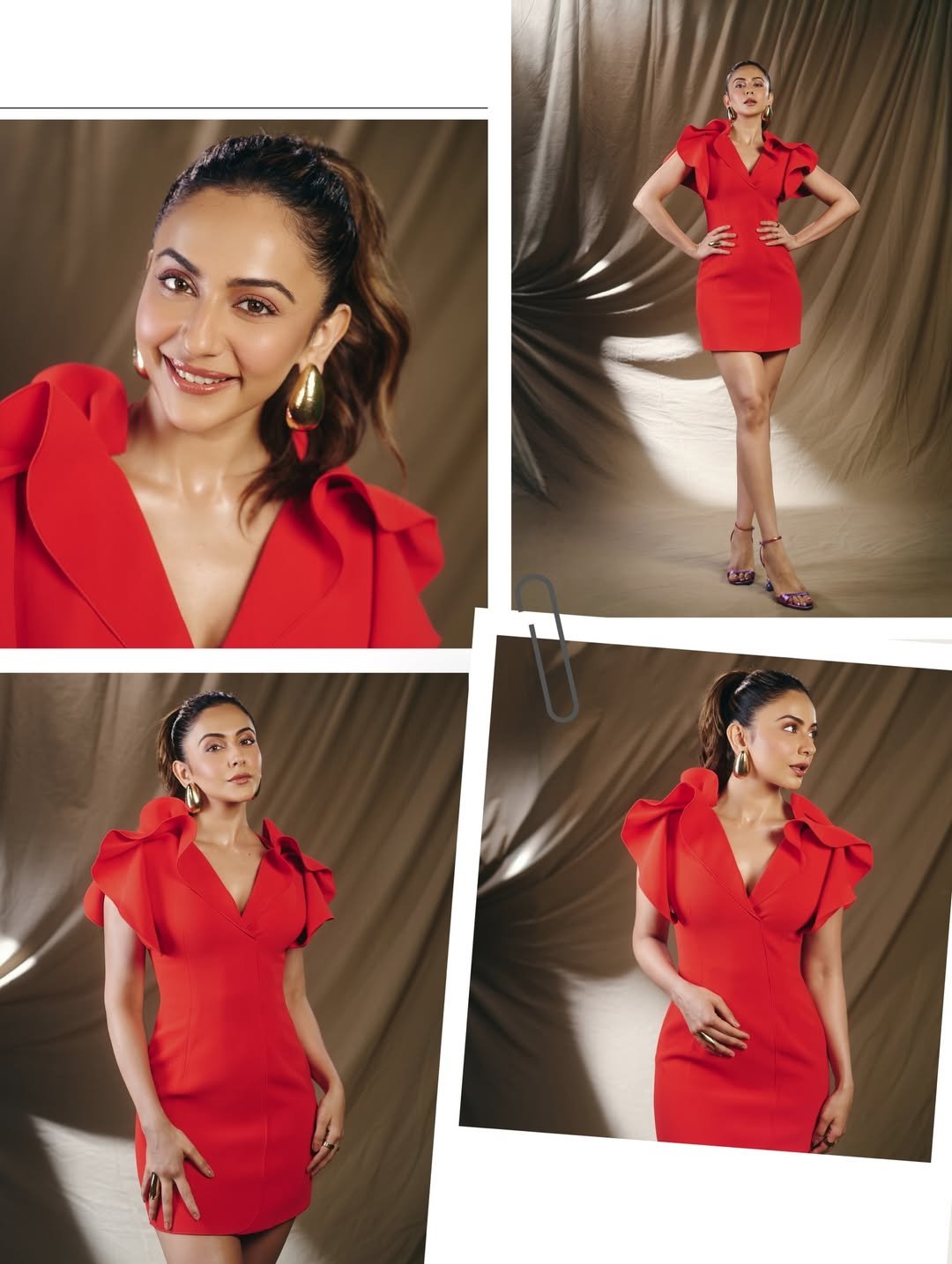 In these pictures, Rakul is seen posing in a red dress.