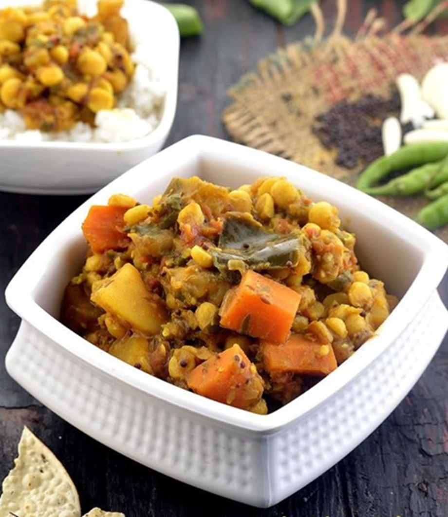 If you prefer simple food, Santula is perfect for you. It consists of boiled vegetables cooked with very little oil and spices. Raw papaya, eggplant, and beans are the main ingredients. It can be prepared with milk or without.