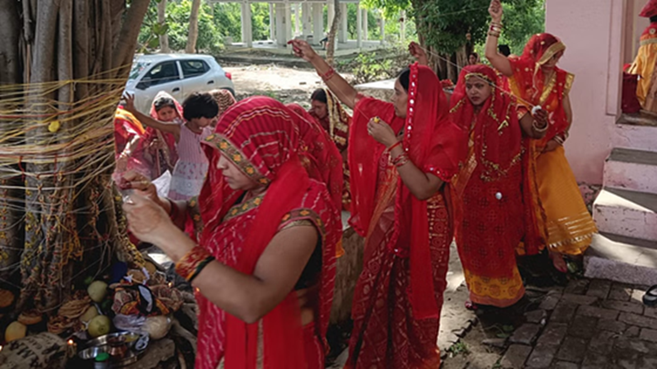 Vat Savitri Vrat is celebrated by worshipping the banyan tree. According to religious beliefs, Brahma, Vishnu, and Mahesh are present in the banyan tree. It is believed that the roots of the tree belong to Brahma, the trunk to Lord Vishnu, and the branches to Lord Shiva. It is said that worshipping under the banyan tree during Vat Savitri Vrat fulfills all wishes.