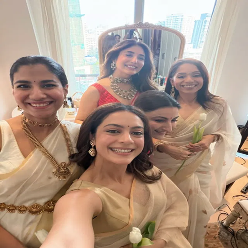 Kritika wore a red saree at her wedding, while her friends wore off-white Kanjeevaram sarees. Kritika has clicked many beautiful photos with her friends.