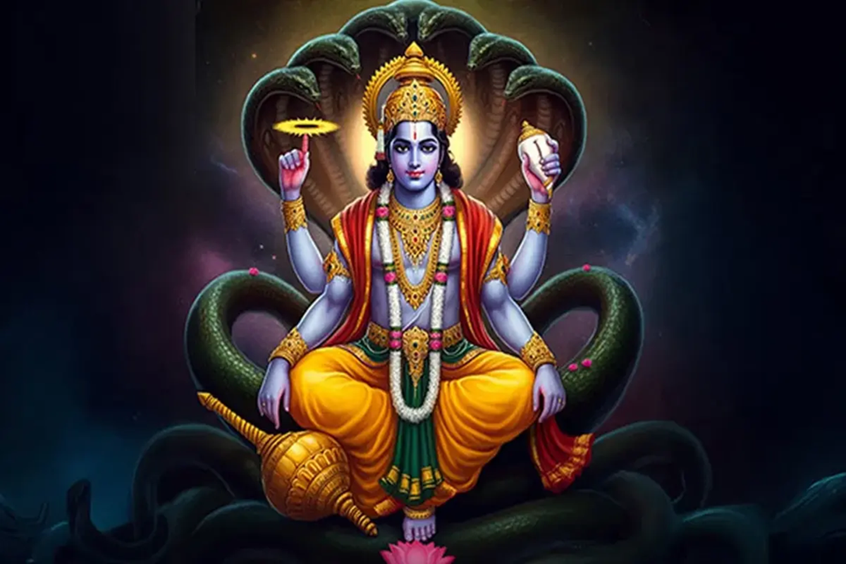 Reciting the Vishnu Sahasranama (The Thousand Names of Vishnu) on the night of Ekadashi is believed to destroy all sins and invoke the divine grace of Lord Vishnu. To perform this ritual, take a bath—or at least wash your hands and feet—and wear yellow-colored clothing. Thereafter, light a ghee lamp in front of an idol or image of Lord Vishnu. Finally, recite the Vishnu Sahasranama.
