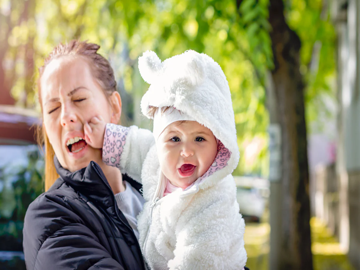 When a child bites or pulls your hair and you yell loudly, the child may perceive this as an interesting reaction. This can encourage them to repeat the behavior. It's better to say "Ouch" or "No" in a calm but firm voice and gently remove their hand or mouth. Also, explain in simple terms that it hurts.