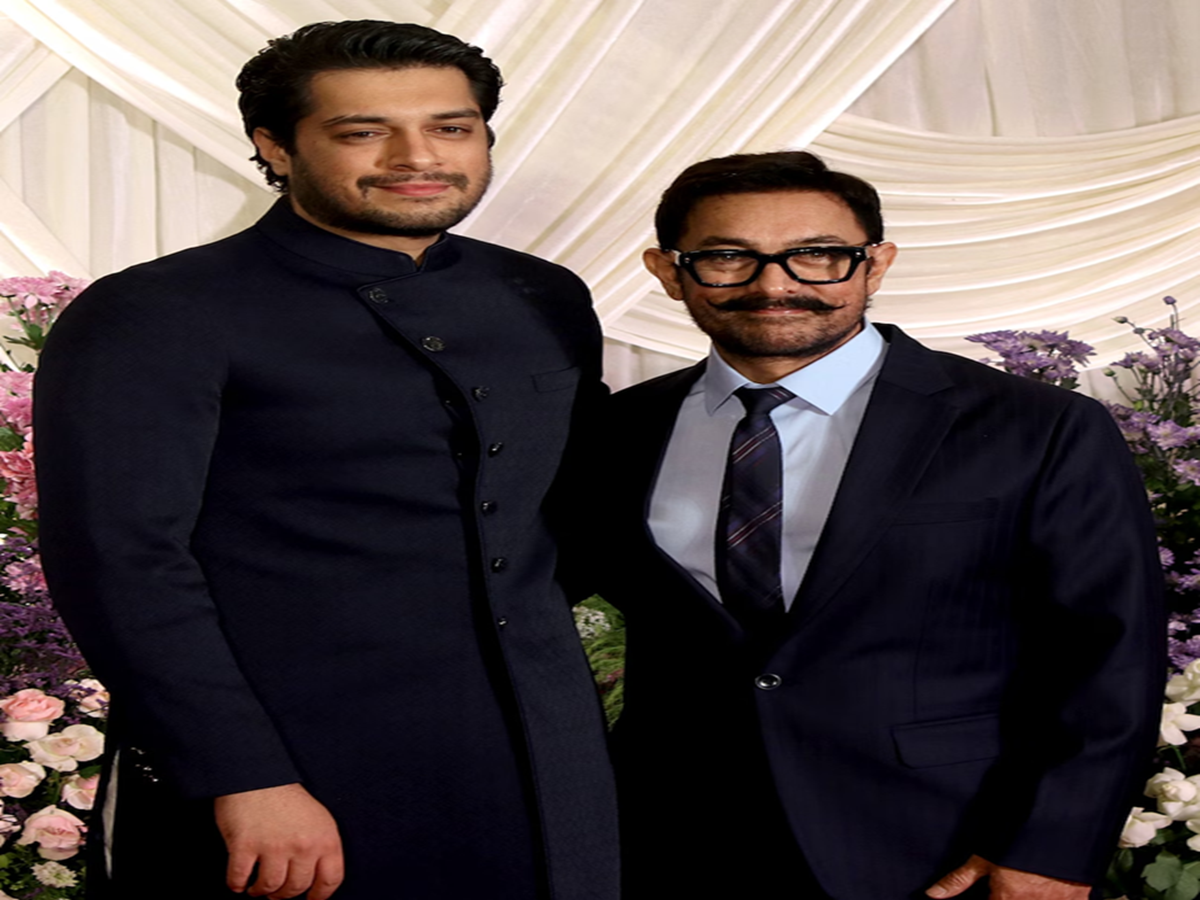 Aamir Khan arrived at the reception accompanied by his son, Junaid Khan. The father-son duo happily posed for the cameras. Aamir wore a dark suit and matching trousers over a blue shirt, while Junaid opted for a traditional look, sporting a dark blue kurta paired with white pajamas.
