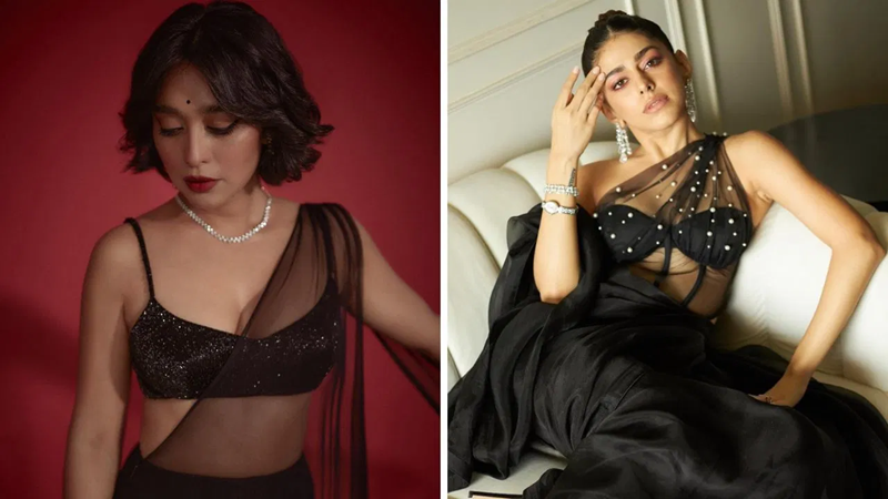If the black colour saree is lightweight or made of glitter fabric, then oxidized jewellery gives a great look. Elegant jewellery is perfect with a black colour western dress. Actress Sayani Gupta has chosen a simple neckpiece for her saree which is giving an elegant look. Alaya F has also chosen Elegant jewellery which is giving a great look.