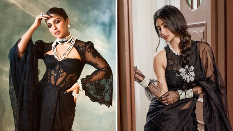 The combination of black and white has always been considered classy and it never goes out of fashion trend. Only the designs of the outfits keep changing. You can wear pearl jewellery with a black saree. For this, ideas can be taken from the looks of Bhumi Pednekar and Mouni Roy.