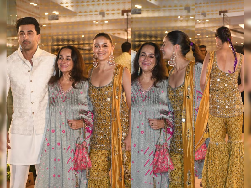 Karisma was wearing a pink colored dress. Ranbir Kapoor, and Alia Bhatt also reached Aadar Jain's mehndi function. Alia's mother Soni Razdan also came with them.