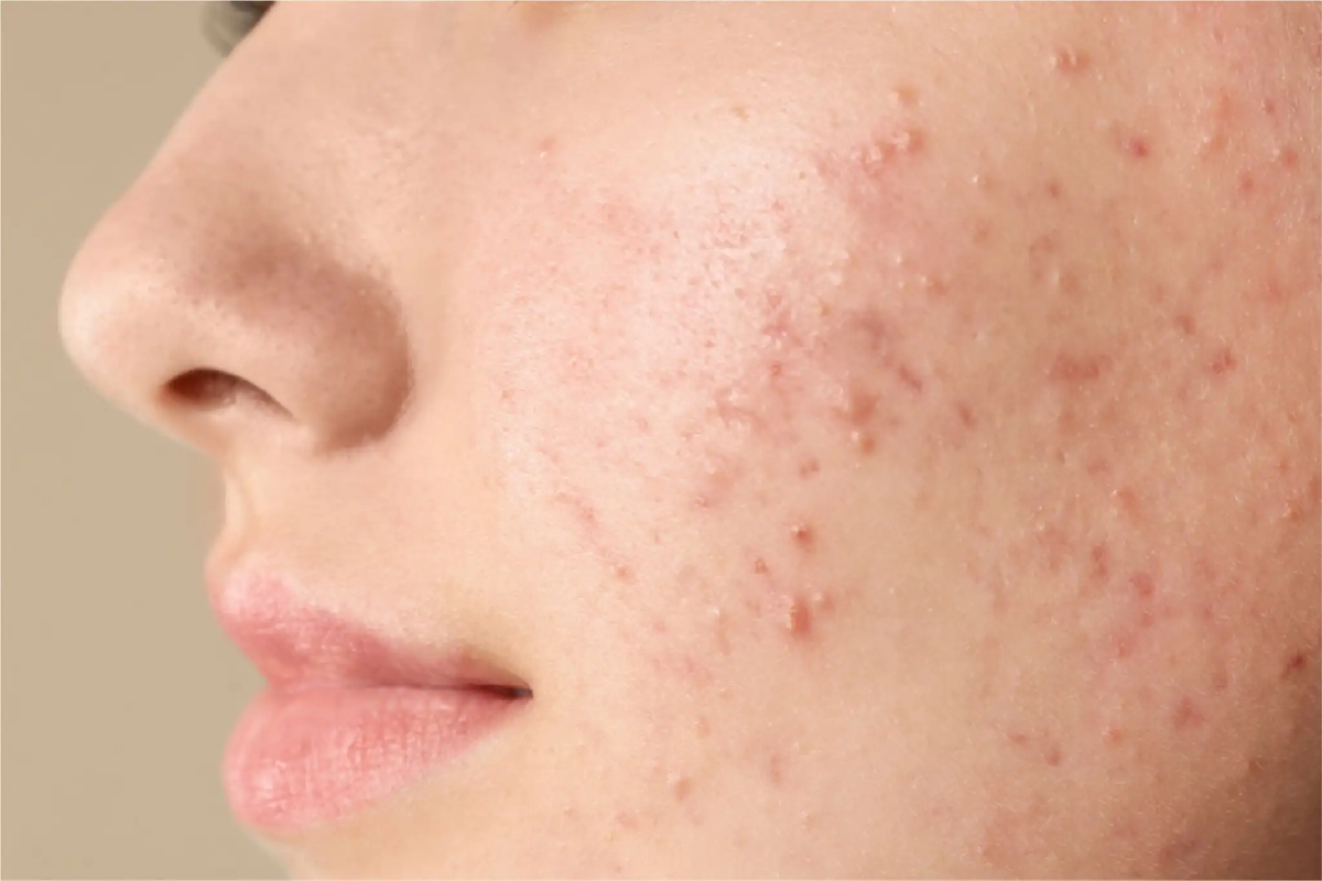 If acne predominantly appears on the chin and jawline, it may be a sign of hormonal imbalance. This is particularly common in women, where hormonal fluctuations—occurring before menstruation, or in conditions such as PCOS or thyroid disorders—can trigger a sudden flare-up of acne.