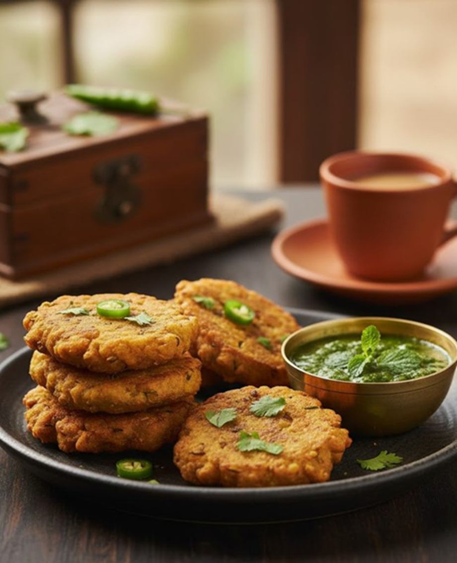 Poppy seeds (posto), coconut, and spices are ground into tikkis and deep-fried in oil. Their unique flavor is a favorite during the monsoon season.