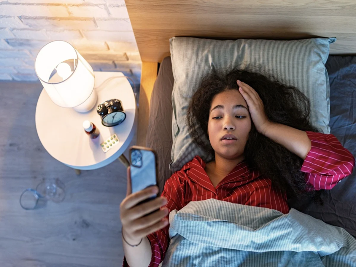 Blue light emitted from screens keeps the brain active and suppresses the hormone melatonin, which helps induce sleep. This delays sleep onset and leads to fragmented sleep. Consequently, fatigue, irritability, and increased stress are experienced upon waking in the morning.