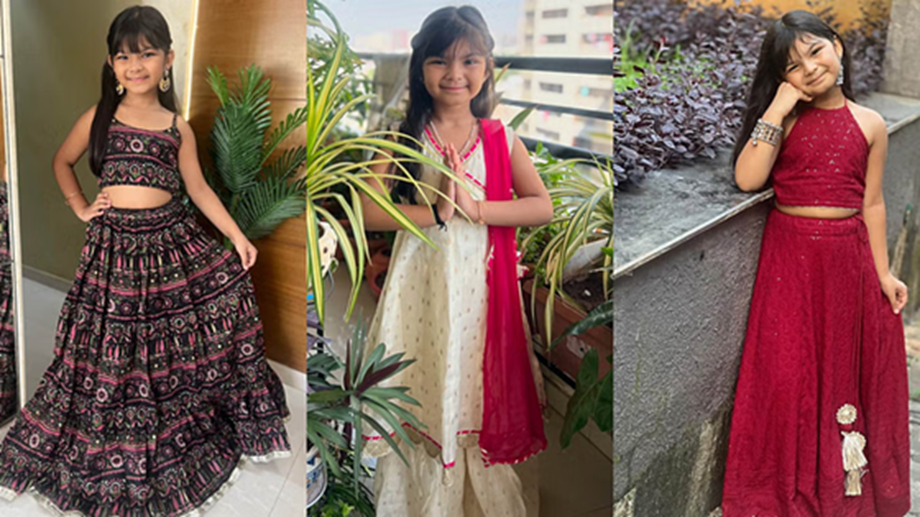 If a lehenga or skirt top is not available then a beautiful Anarkali suit or sharara is also a good option, which will give her a look like Mata Rani. Just keep in mind that if you make her wear ethnic wear on the day of Navami, then her look will be the cutest and always different.