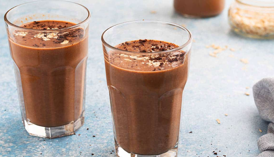 - The chocolate oat smoothie is ready.