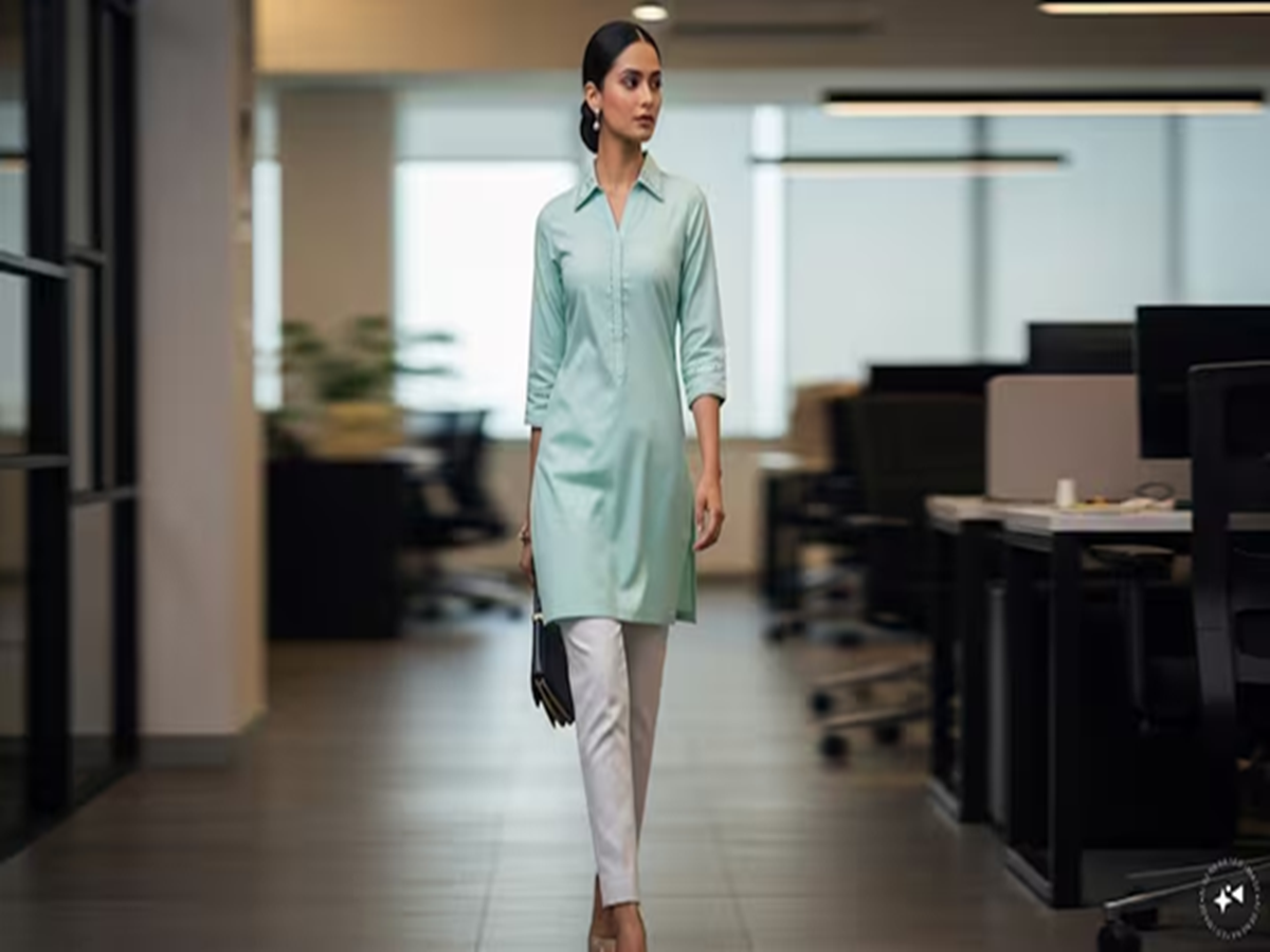 Collar-neck short kurtas in pastel shades are versatile enough for both office and casual settings. Their structured design is perfect for professional wear, while the soft colors are well-suited for the summer season. Pair one with cigarette pants for a polished, smart look.