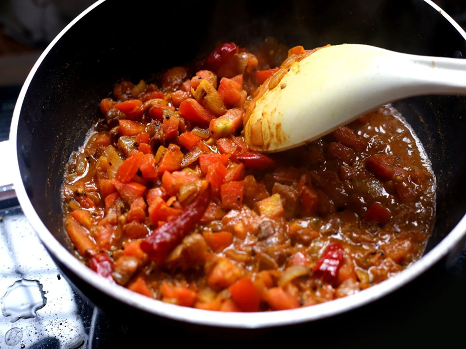 You keep the proportion of spices, salt, etc., equal, but if you add more oil to the vegetables, the taste gets spoiled. Often, to enhance the taste, people add more oil, which increases the calorie intake, and the vegetable becomes heavy. One to two spoons of oil is enough.