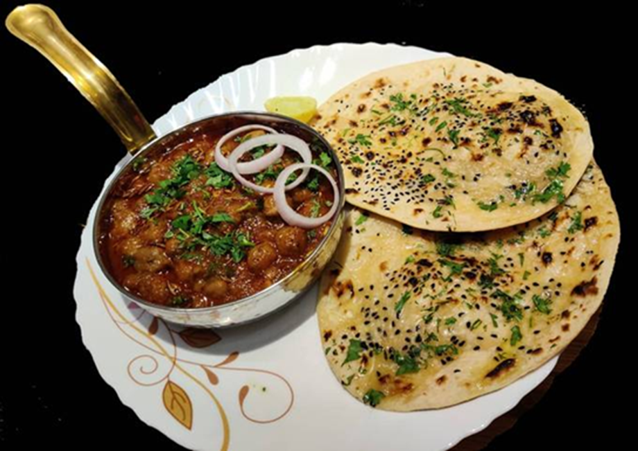 Serve Dhaba-style chole with hot bhatura, puri, jeera rice, or naan. Add onion slices, lemon and green coriander on top.