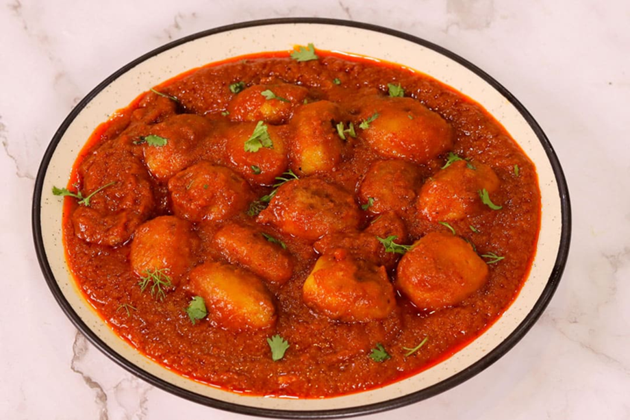 Now your hot dhaba-style dum aloo is ready. Serve it with roti, paratha or naan.