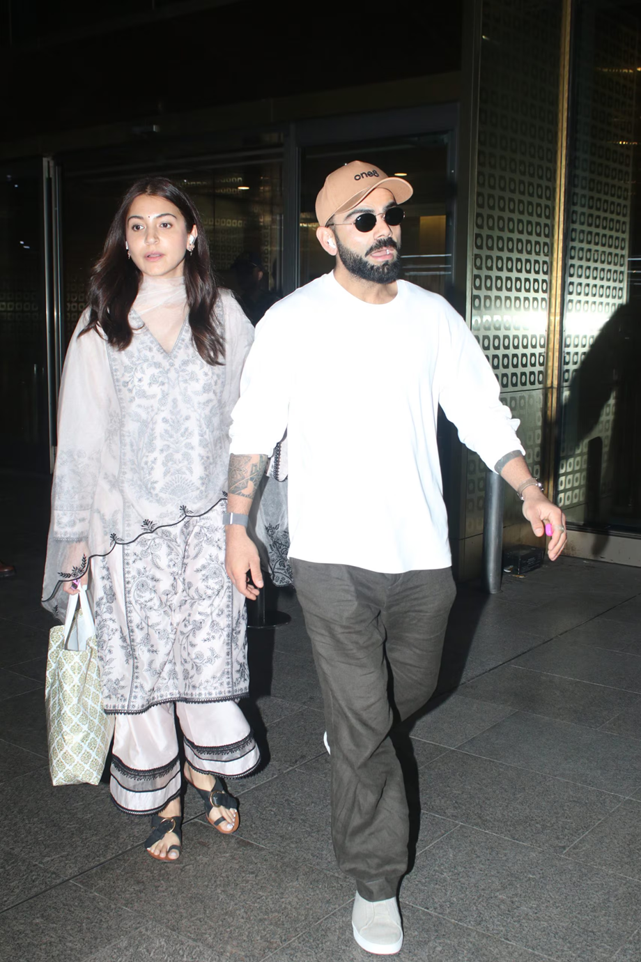 Anushka's simple beauty is visible in this beautiful kurta. After Vrindavan, this couple was spotted at Mumbai airport. Anushka looked emotional on reaching Premanand Baba's place, while at the airport she was seen wearing a small bindi. This was the first visit when Anushka and Virat reached Vrindavan without their children.
