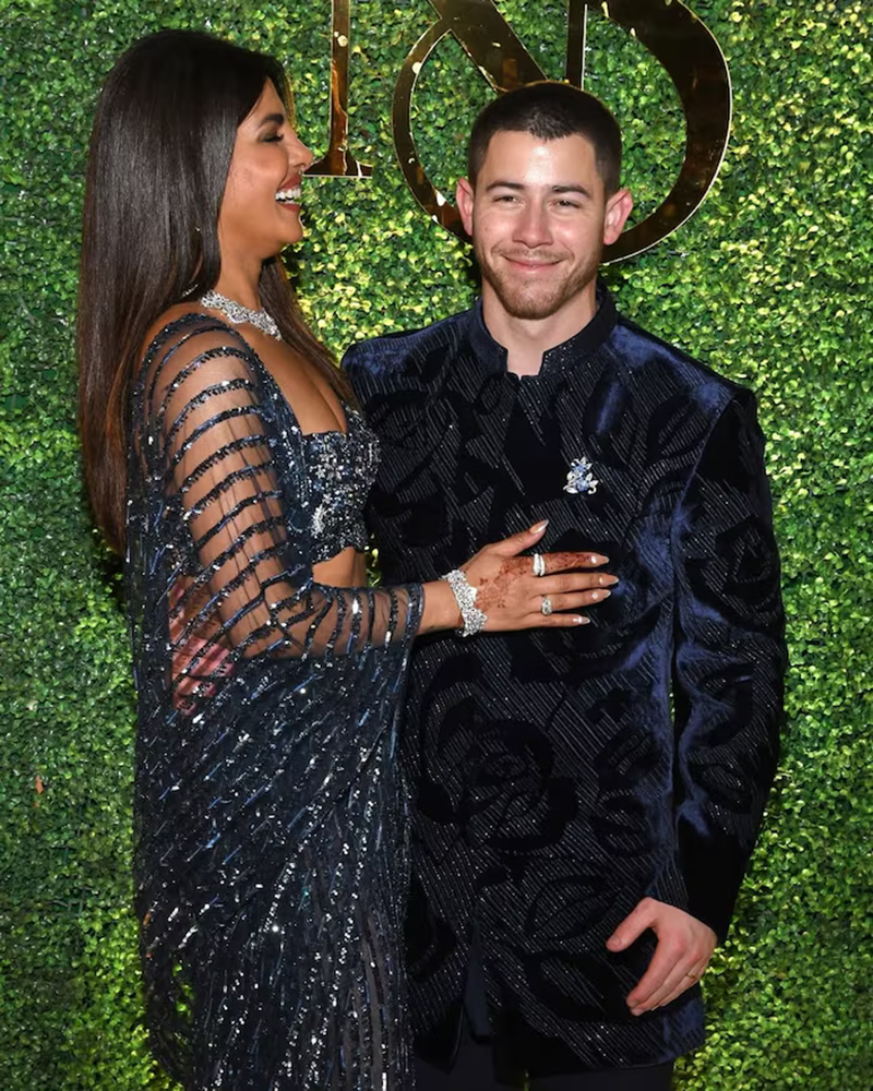 Nick Jonas' classy look- Matching your partner during Valentine's week is considered a romantic gesture. Nick Jonas was seen in a matching outfit on this occasion. He wore a midnight blue sherwani with threadwork detailing and signature Falguni Shane Peacock buttons. His royal look matched Priyanka's outfit perfectly.