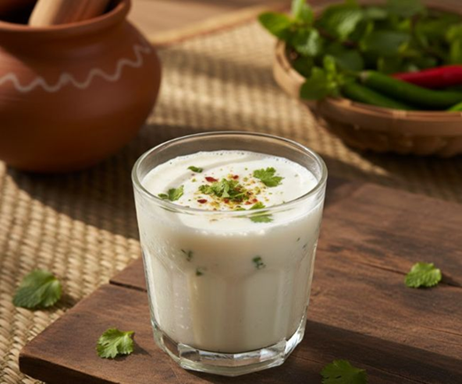 Don't forget to drink a glass of buttermilk with or after meals. Buttermilk is not only low in calories, it also soothes your digestive system. Drink it with a little roasted cumin and black salt. It keeps you hydrated and adds a light flavor to your diet.