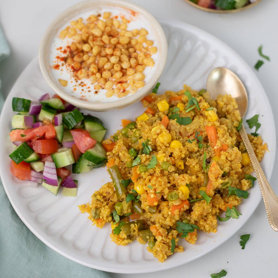 You can serve this delicious quinoa pulao with curd, raita or pickle.