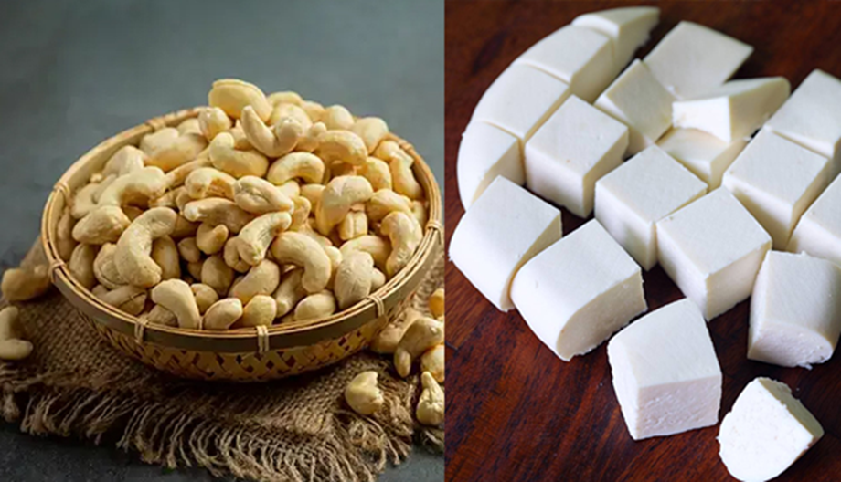 - After this, take out the fried paneer on a plate and keep it aside. Now add cashews in the same oil and fry them till they become golden. After this, take them out and keep them in a bowl.